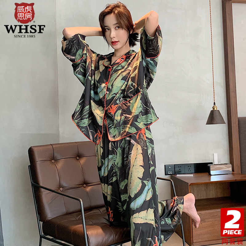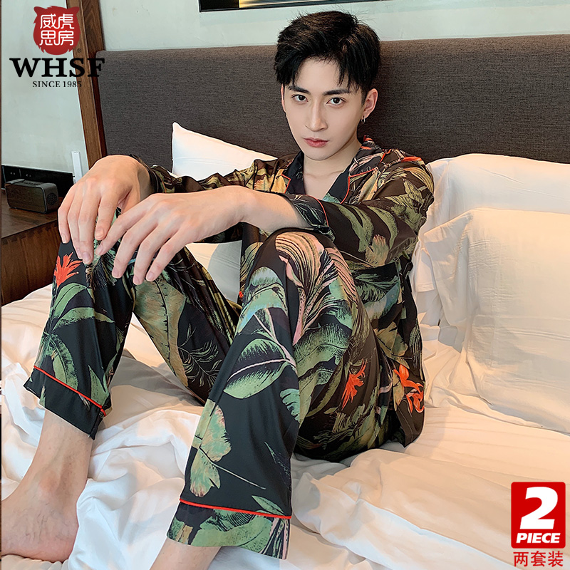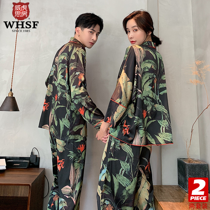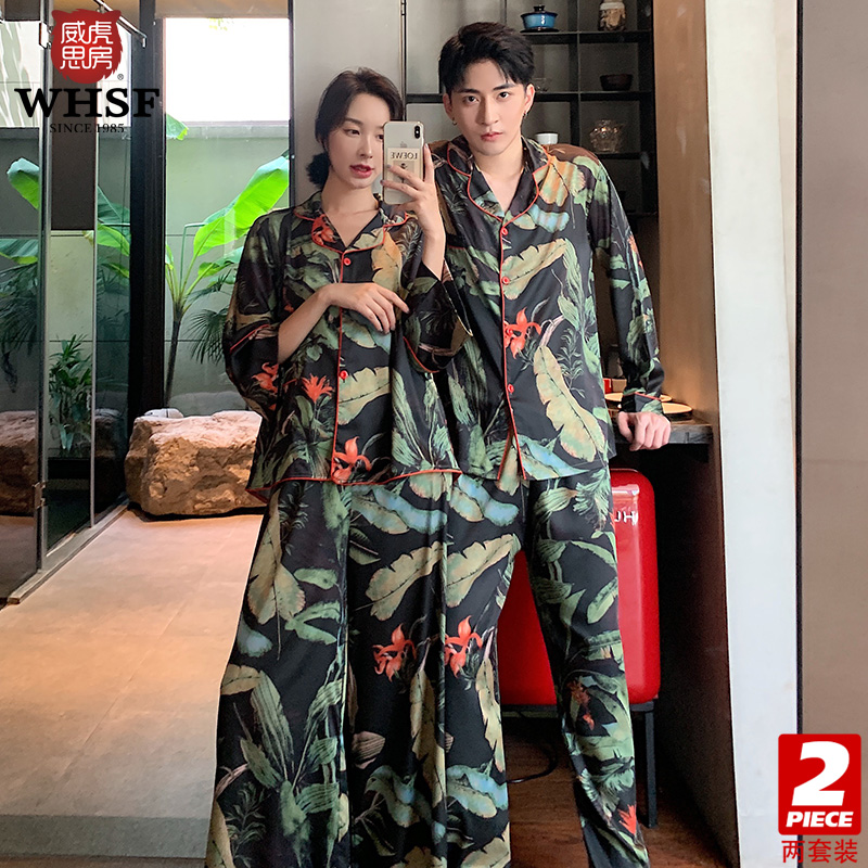 2 sets price couple pajamas women spring and autumn silk long sleeve wide leg pants casual simple autumn and winter home wear can be worn outside