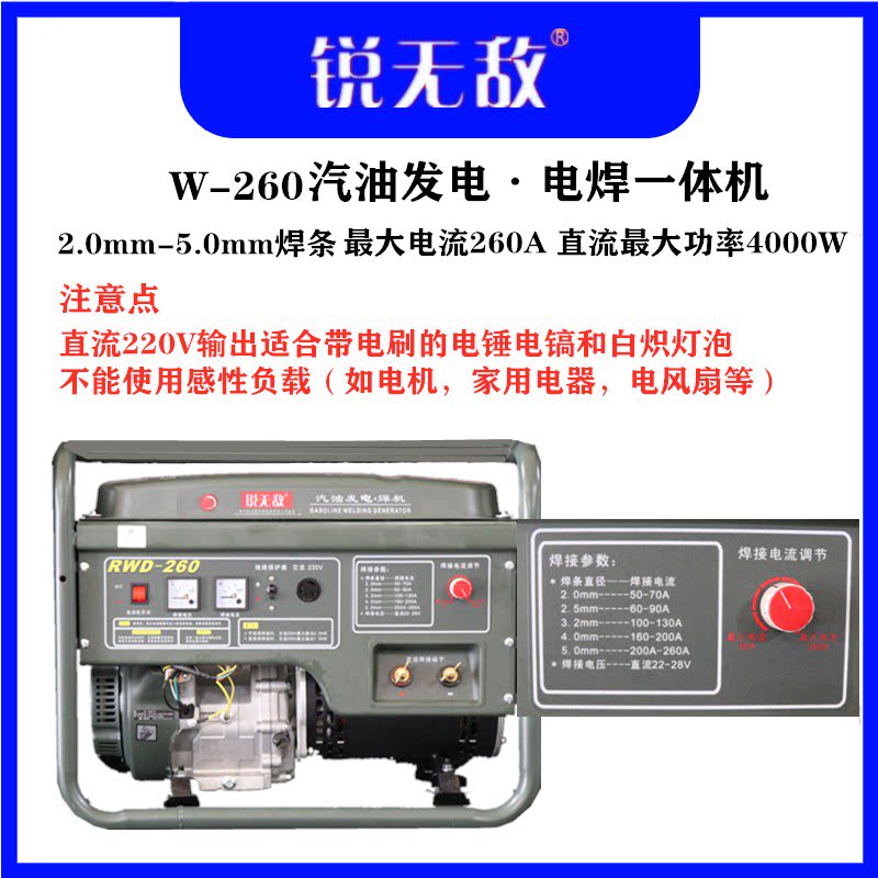 Generator welding machine W-160 260 outdoor mobile welding machine 3 2mm welding rod welding machine
