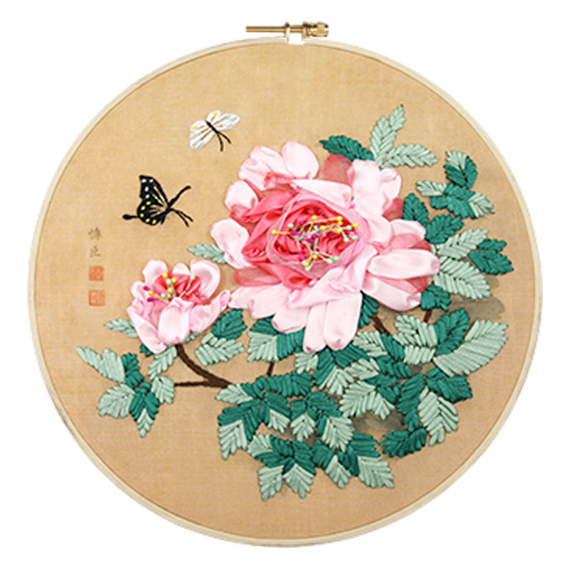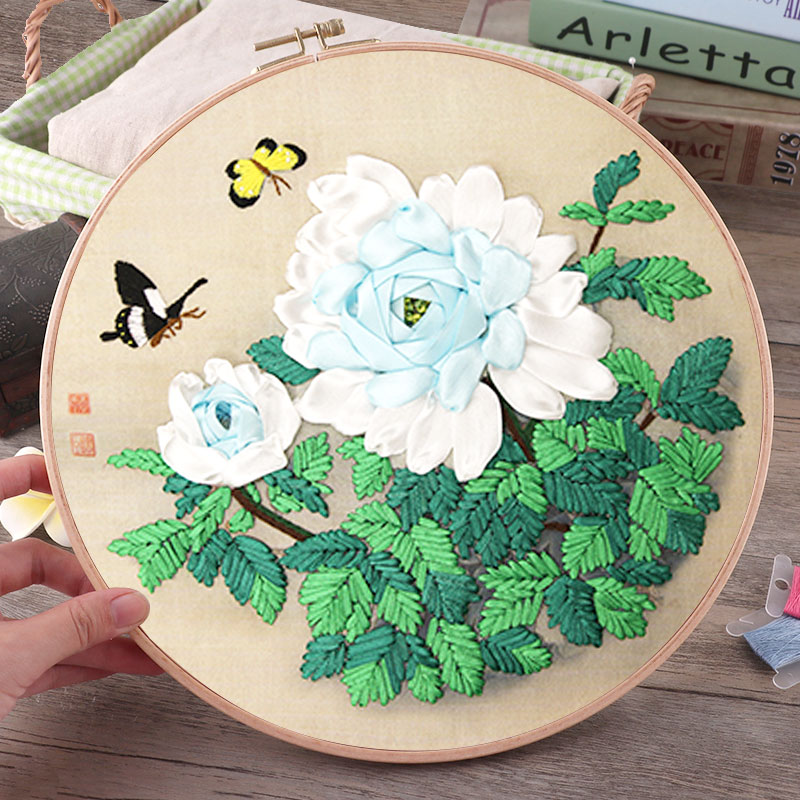 Ribbon embroidery set Handmade complete embroidery set Starter embroidery flower living room hanging painting diy fabric material package