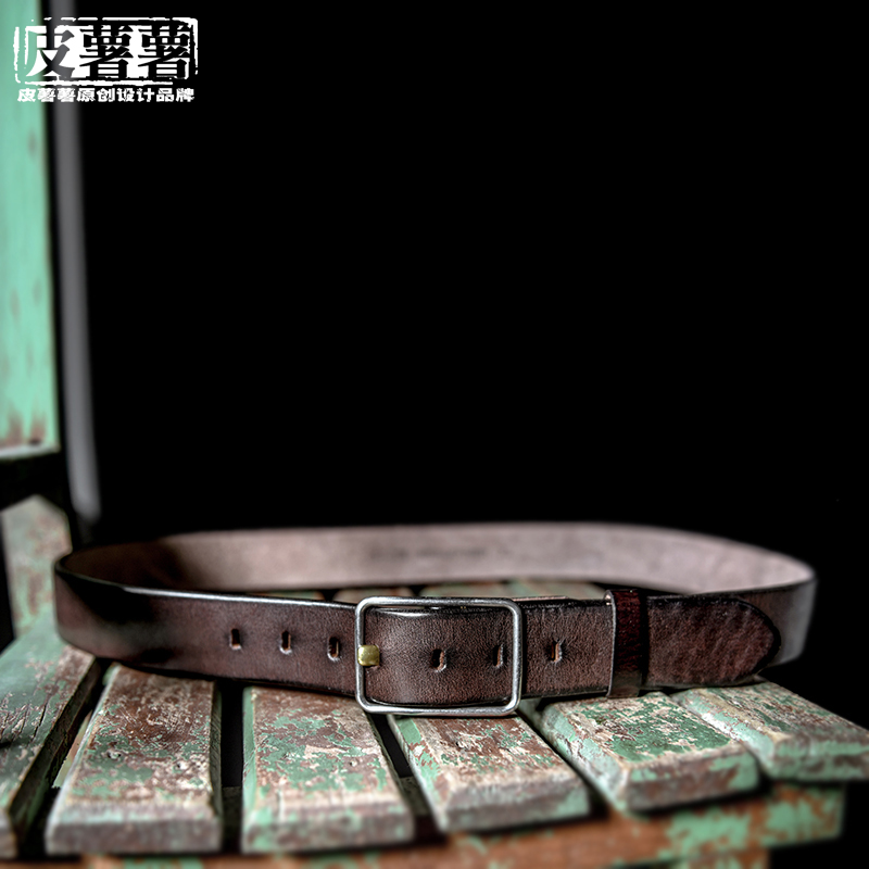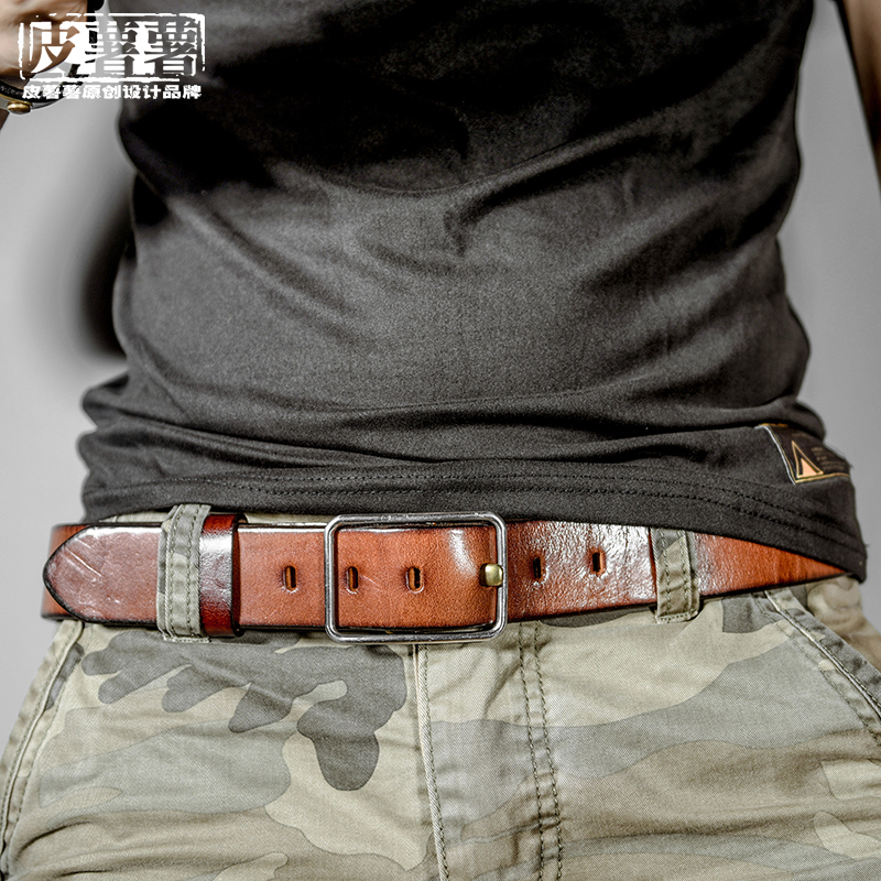 Men's steel - steel - pin - pin belt thickened head - coated cow - leather belt American retro - male casual pants