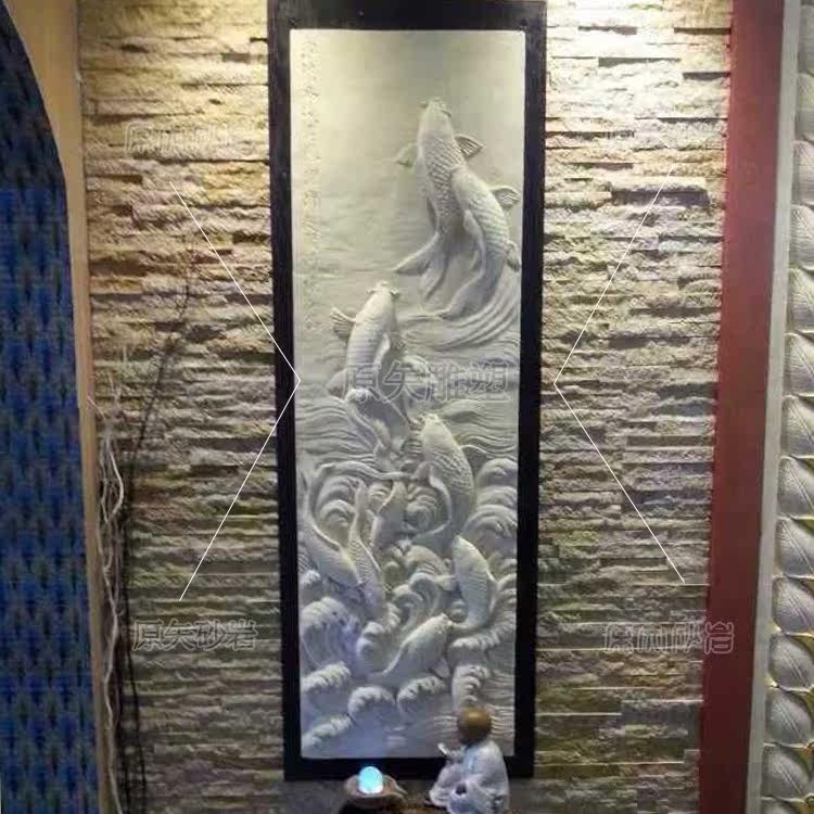 Original Sagite Sandstone Relief Background Wall Genguan Solid Fresco Resin Sand Rock Relief Handmade Sand Sculpture Fish Leap