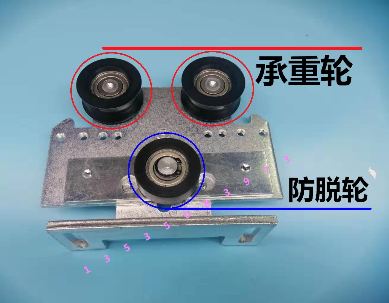 1 anti-off wheel for 1 load bearing wheel suspension wheel assembly