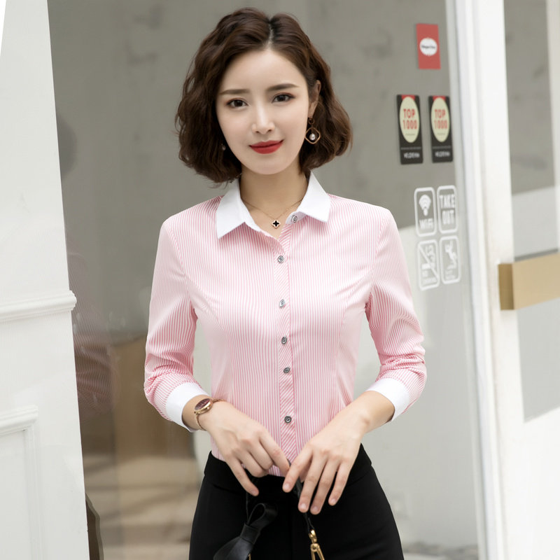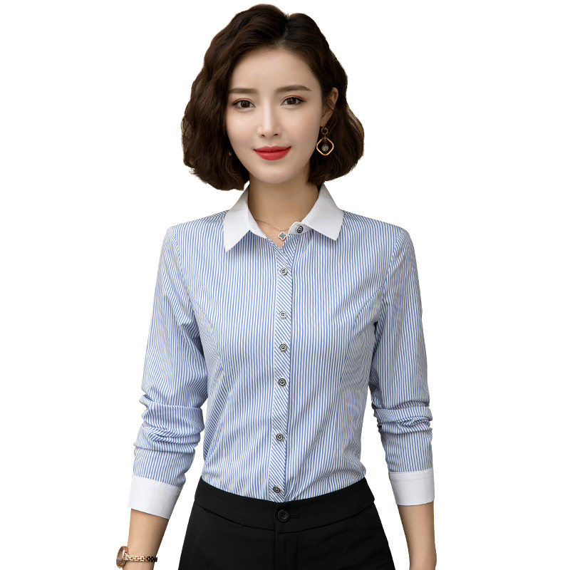 Blue striped shirt female spring long sleeve temperament to work clothes 2022 new tooling shirt work dress for spring