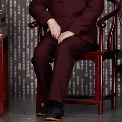 Elderly cotton pants men plus velvet thick elastic belt grandfather autumn and winter loose trousers 6080 years old Chinese trousers