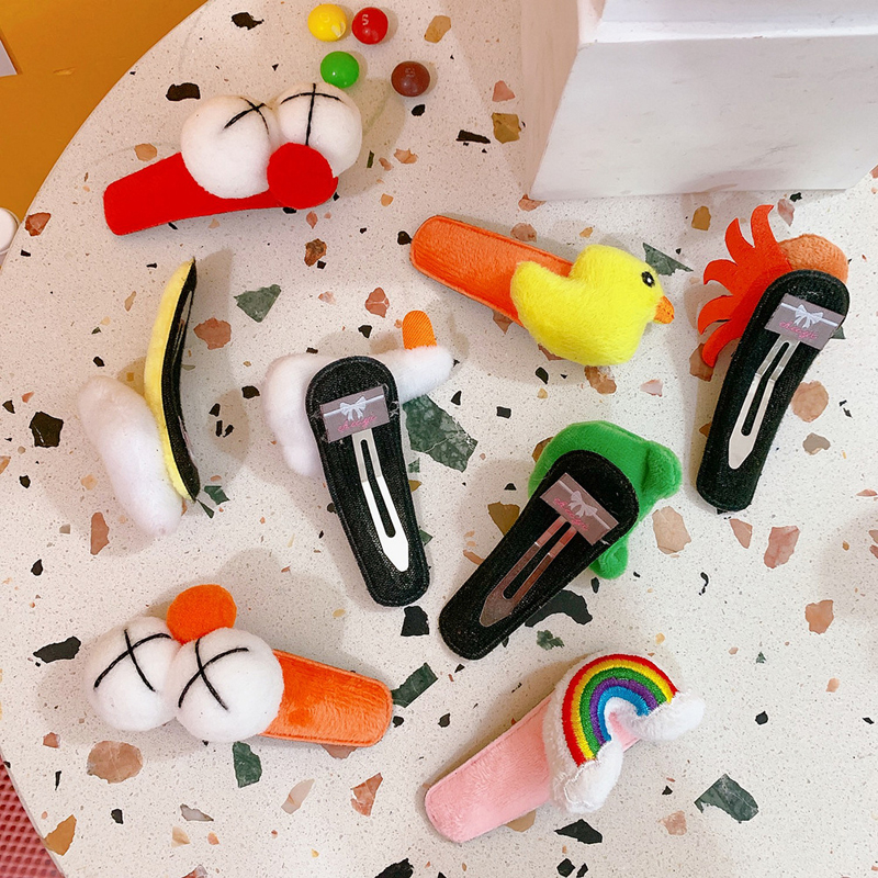 Net red ins Sesame Street Hair Clip Korea Cute Teenage Girl Clip Head Accessories Cartoon Plush Side Clip BB Clip Ho Egg