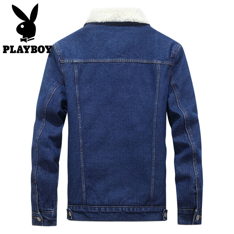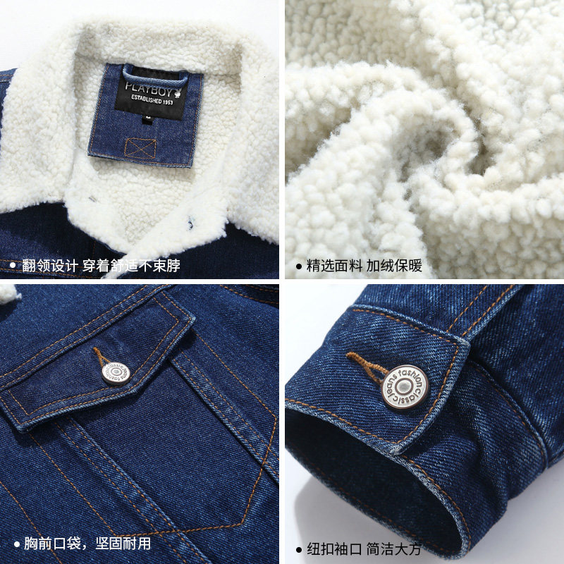 (Special Clearance) Playboy Denim Jacket Men's Autumn and Winter Korean Style Trend Loose Velvet Jacket Men