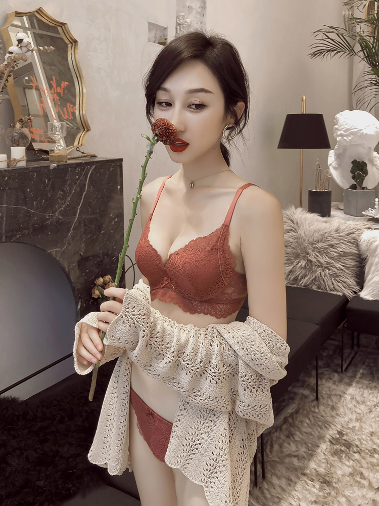 Underwear women gather on the support to adjust the small chest anti-sagging breasts sexy lace temptation bra underwear set