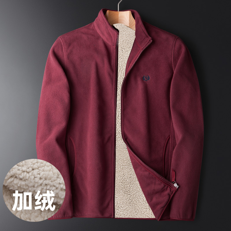 Polar fleece sweater men's casual running sports middle-aged dad brushed cardigan middle-aged and elderly plus velvet thick coat