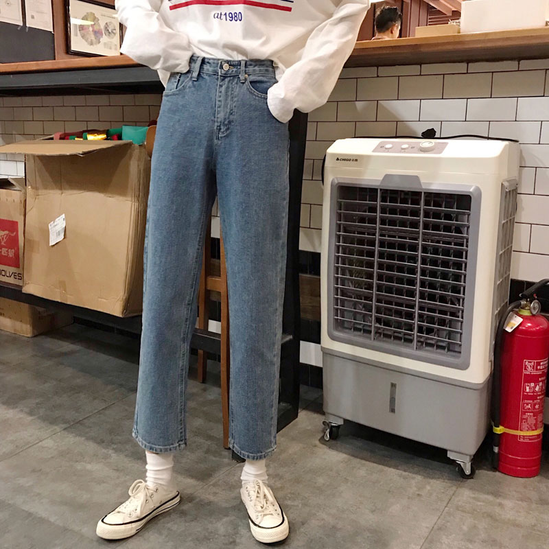 Straight Drum Jeans Woman 90% 2021 Xia's new Han version 100 lap high waist display slim retro original accommodation loose with elegant wind