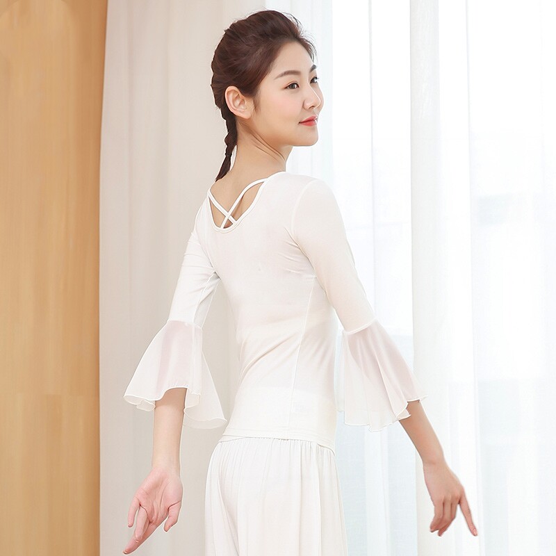 Yoga suit top female professional thin sports high-end modal white temperament fairy with chest pad mid-sleeve spring and summer