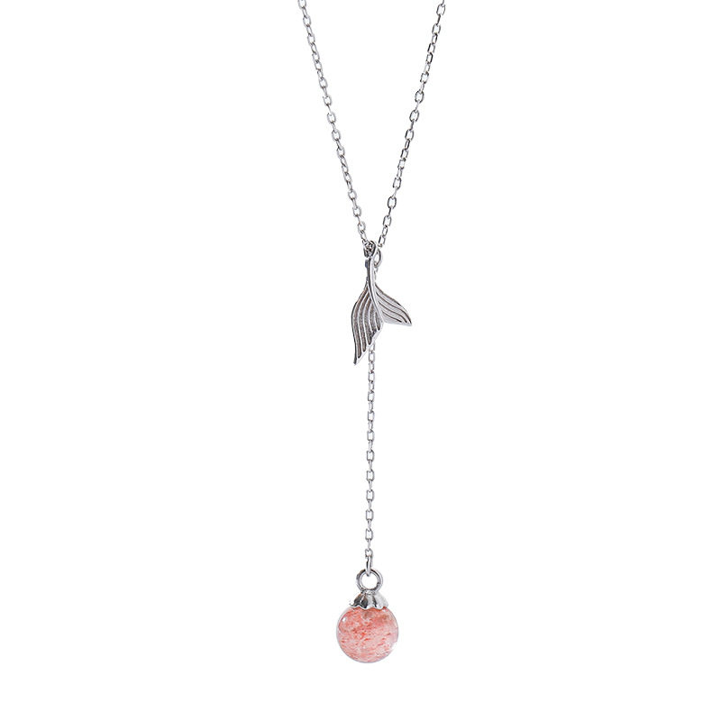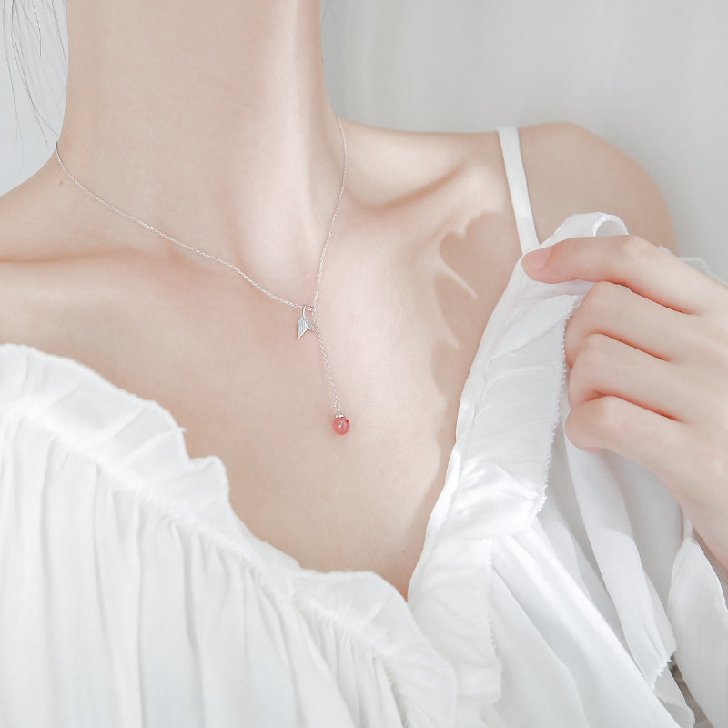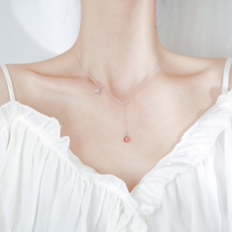 Fishtail necklace female sterling silver necklace female Korean version simple personality temperament strawberry crystal collarbone chain fairy girl sweet