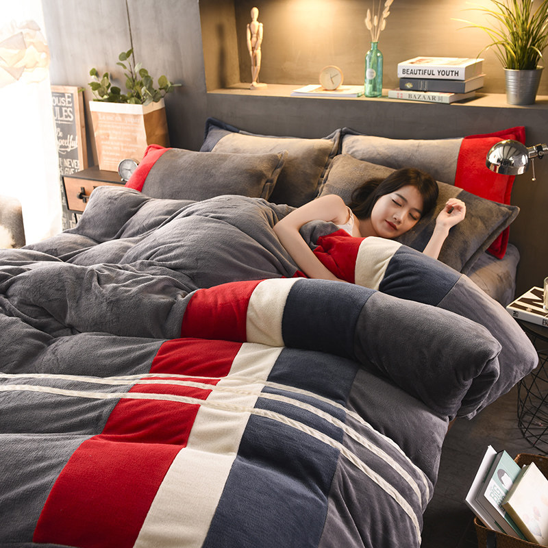 Double-sided Farley flannel bedding four-piece winter thickened milk coral velvet bed sheet quilt cover baby velvet