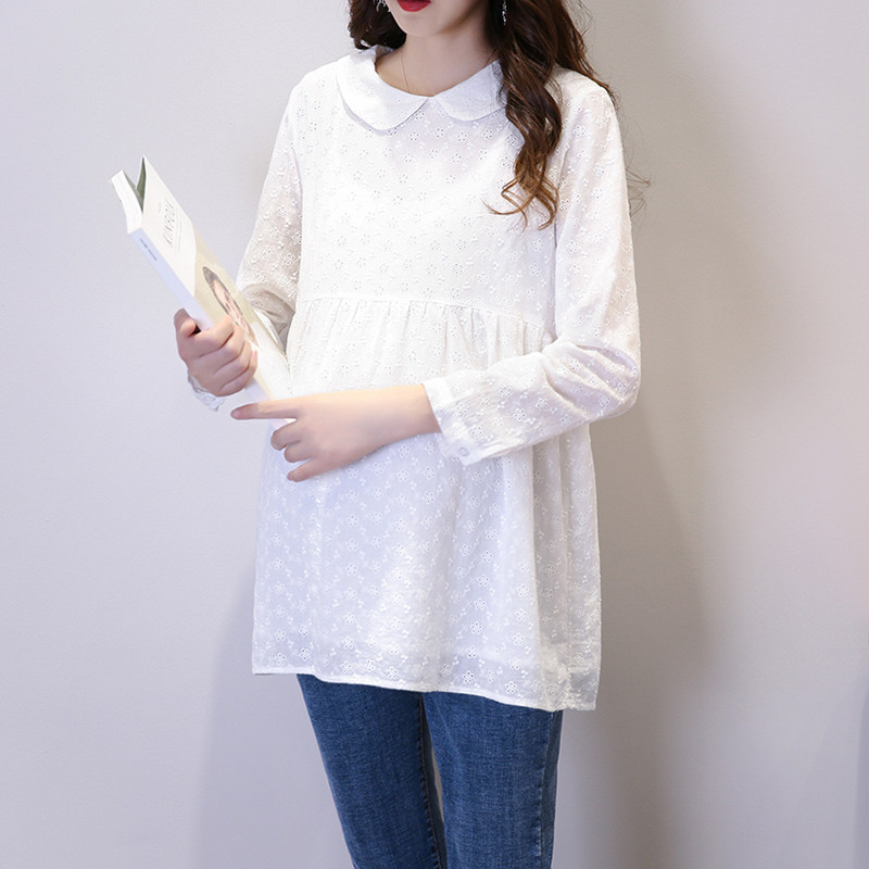 2022 Spring and Autumn Maternity Wear Doll Collar Long Sleeve Top High Waist Shirt White Cotton T-shirt Fashion Bottom Layer