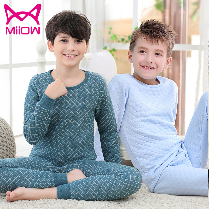 Cat man boy three-layer heating pants Pure cotton children's thickened sanitary clothes Big children's autumn clothes sanitary pants Boy pajamas