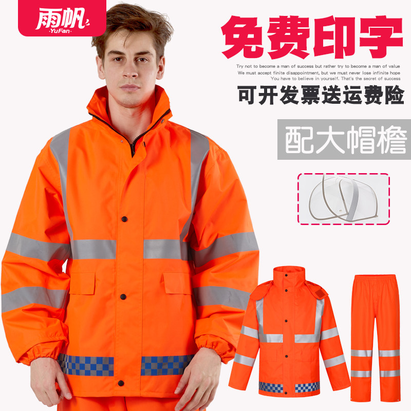 Orange reflective raincoat sanitation two-piece men's riding delivery adult raincoat pants suit waterproof traffic rainstorm
