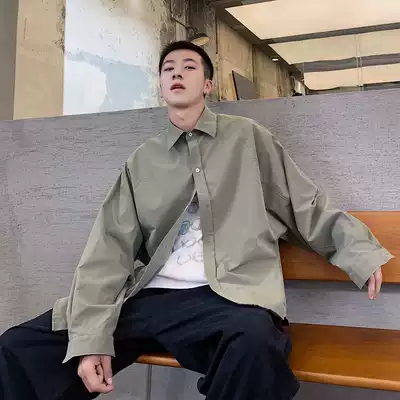 2021 autumn new solid color shirt men's fashion brand ins harbor wind loose long sleeve shirt men's ruffian handsome wild coat