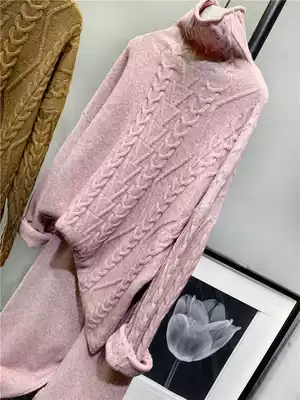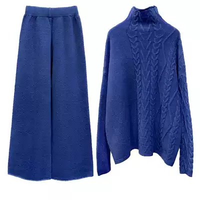 Super beautiful high-end atmospheric field thin loose hemp pattern turtleneck sweater knitted wide leg pants two-piece set women