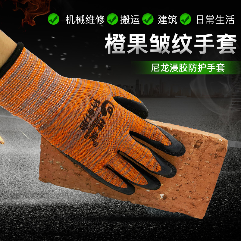 Single left hand single right hand orange fruit lagoon glove dip gel gluing with glue construction site to work protective gloves wear resistant anti-slip