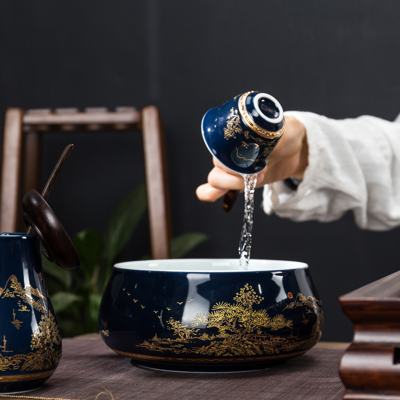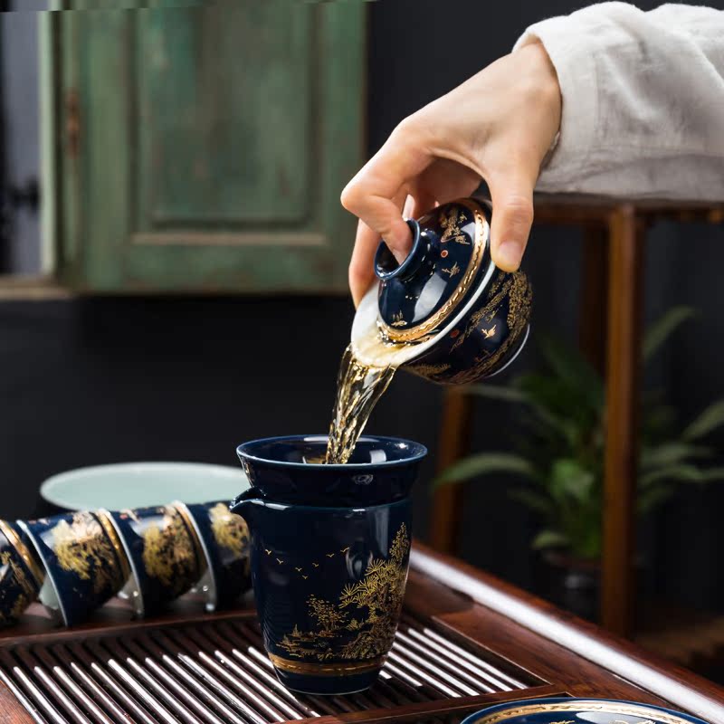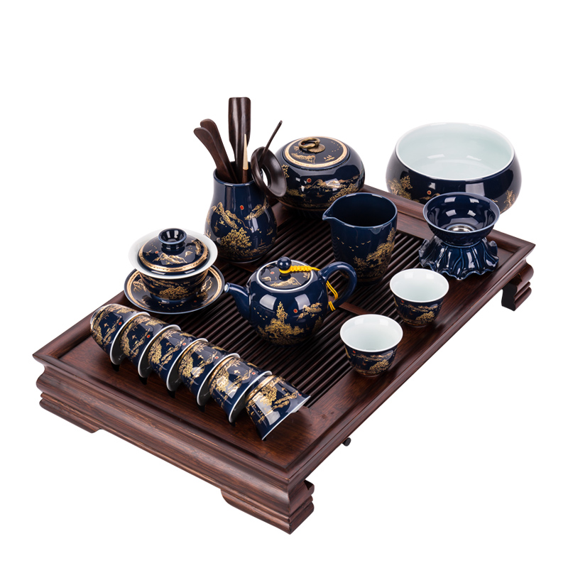 Kung Fu tea set Household retro simple Ji Blue ceramic tea pot Tea cup cover bowl Tea plate Tea table set