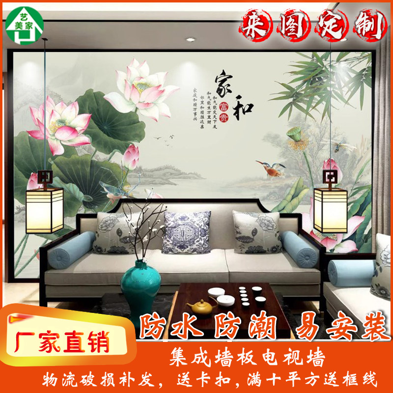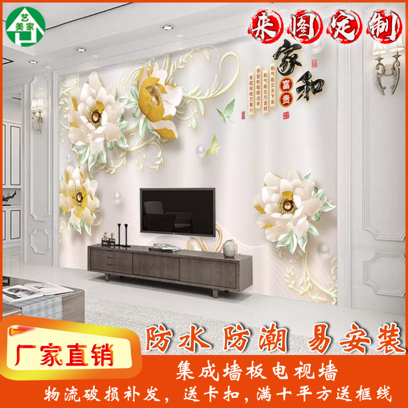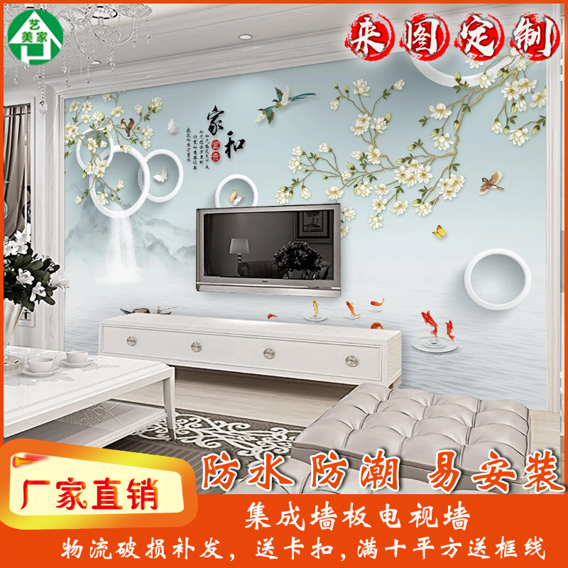 TV background wall integrated wall panel bamboo wood fiber mural 5D custom modern minimalist living room porch 3D decorative panel