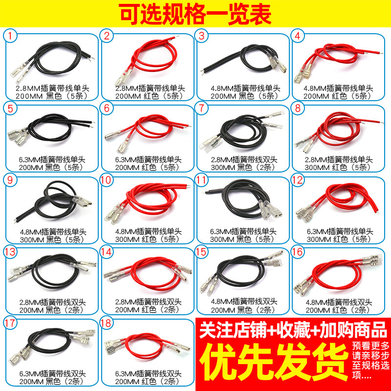 2 8MM 4 8MM 6 3MM plug spring with wire terminal wire with sheath Single head double head cable harness