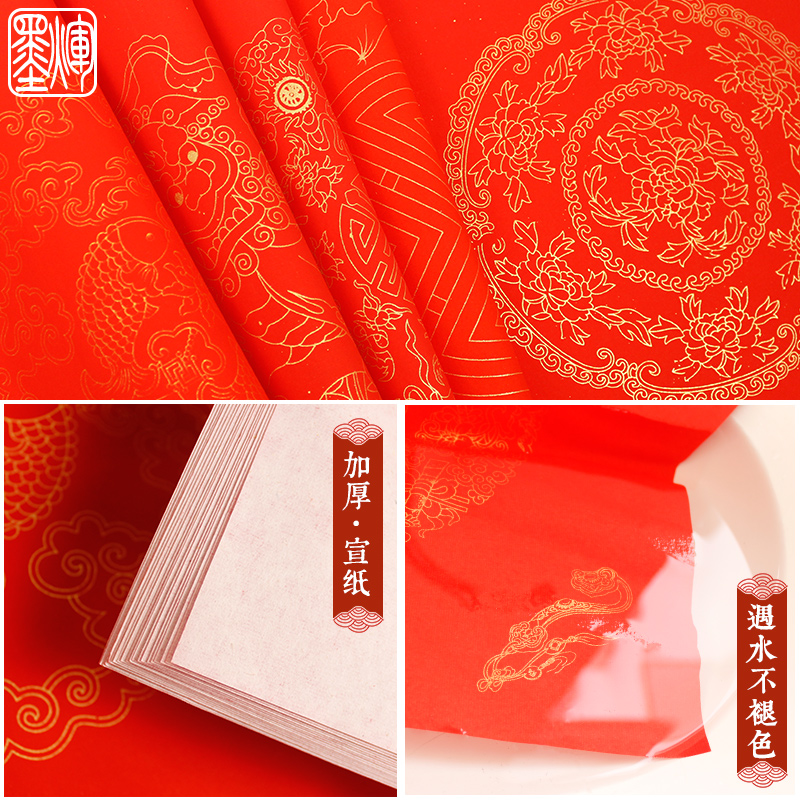 Perpetual Red Fu Character Red Paper Thickened couplets paper Bronzed Golden Spring Couplets Paper Dragon Phoenix with red paper Waving Blank Handwritten Sprinkle Gold couplets Xuan Paper Semi-cooked New Year Spring Union Paper Wholesale