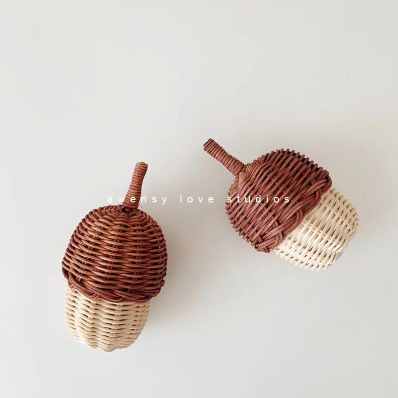 Awensy love Mickey handmade rattan hat ins Korean children's birthday hat acorn bag photo props