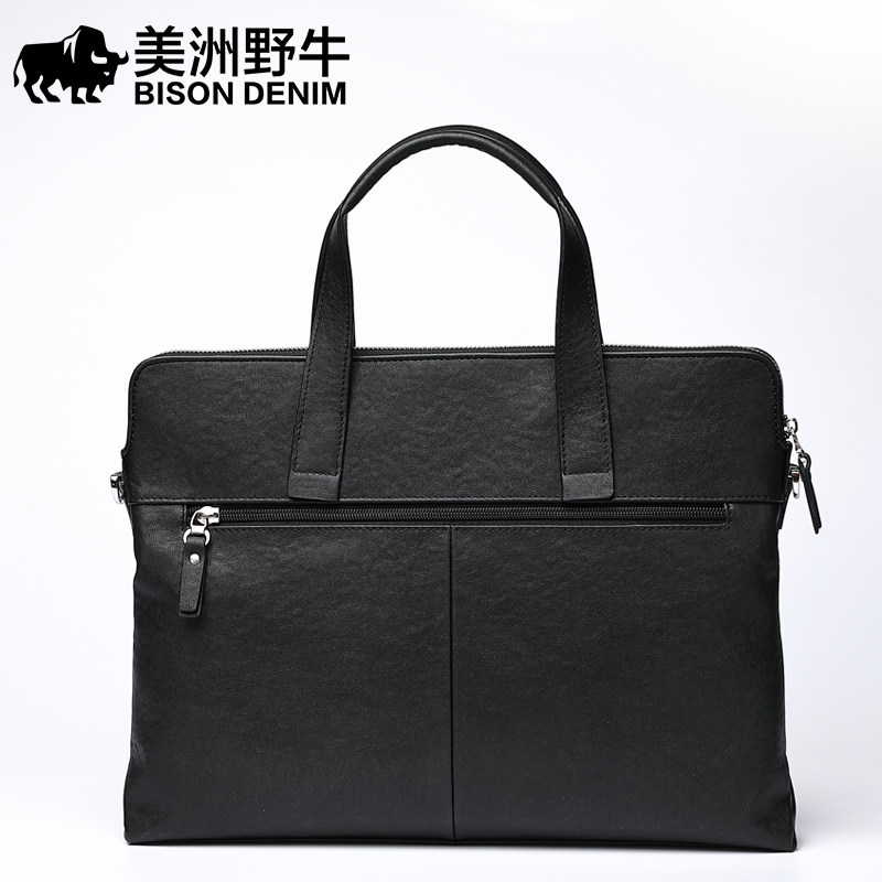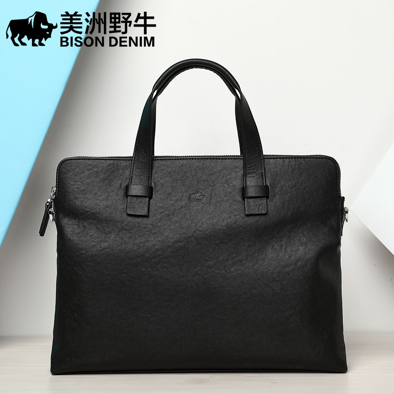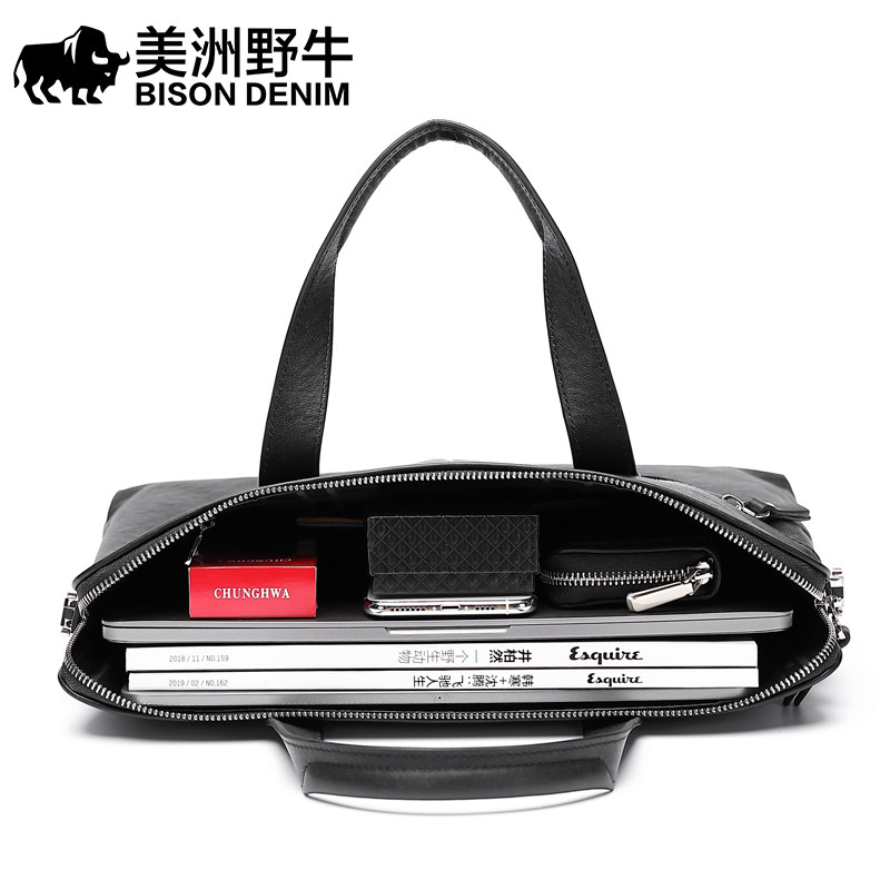American bison business men's bag leather handbag men's cowhide single-shoulder messenger bag Korean version casual horizontal briefcase