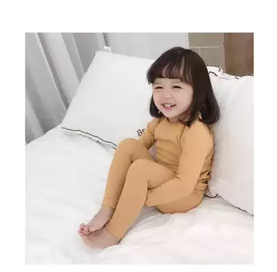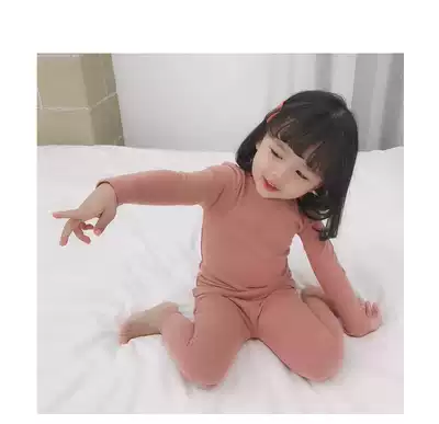 2021 autumn and winter bottoming children comfortable round neck top Pants Girls cute home clothes set 6052