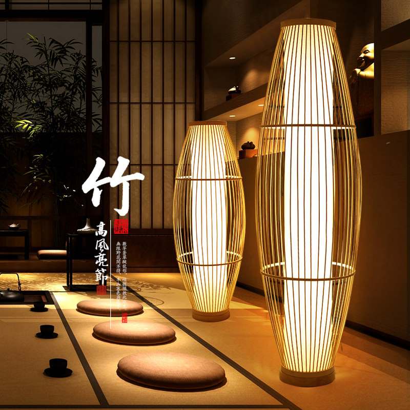 Chinese style ancient wind floor lamp living room bamboo art lamps tea room clubhouse Japanese style folk and bamboo weaving decoration small table lamp creativity