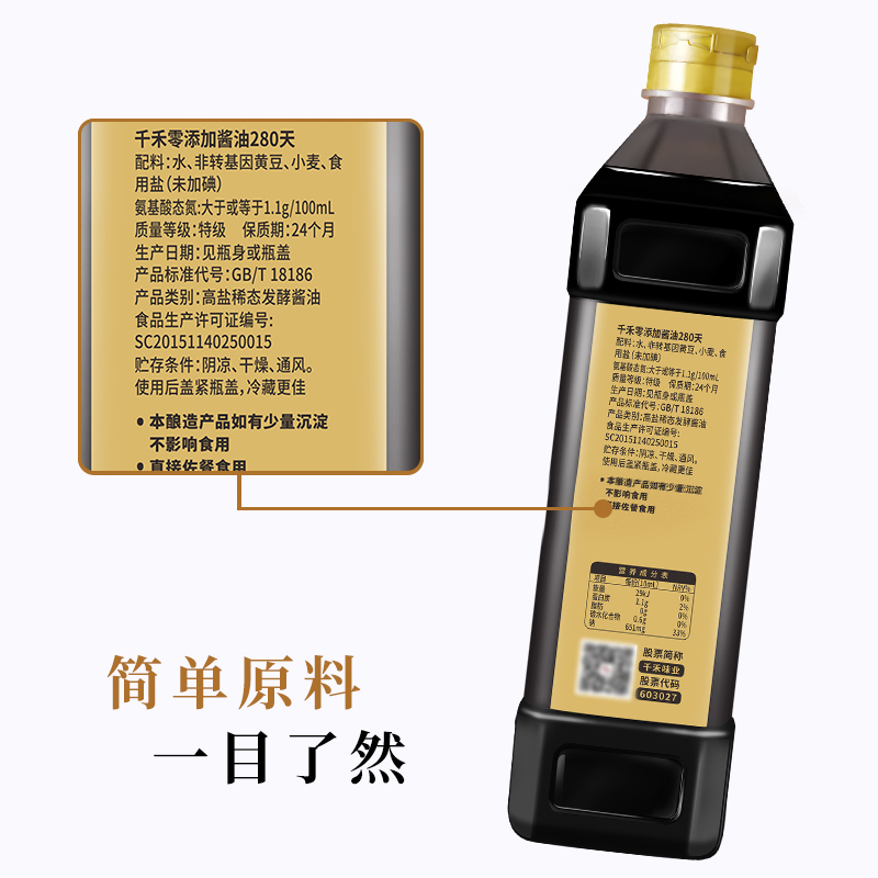 Qianhe Toudao Original Flavor 280 days Soy Sauce 1L Premium Light Soy Sauce Brewed soy sauce Umami noodles with zero added MSG