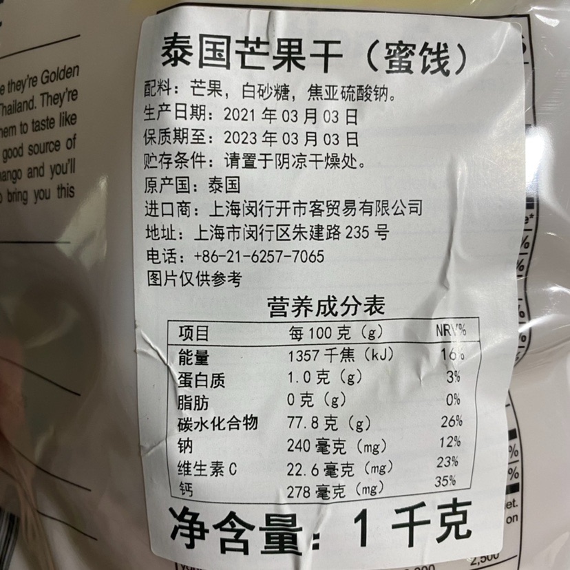 Shanghai spot costco Thailand imported dried fruit candied preserved fruit Sweet mango dried snack 1000g
