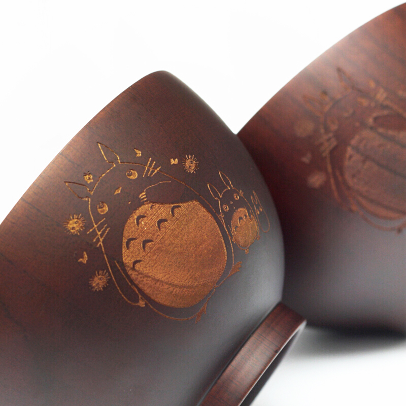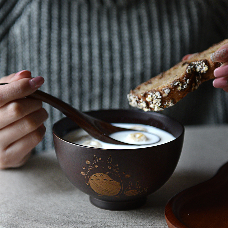 Wooden bowl Household cute cartoon pattern rice bowl Baby bowl Anti-hot hand wooden bowl Soup bowl Japanese-style whole wood bowl