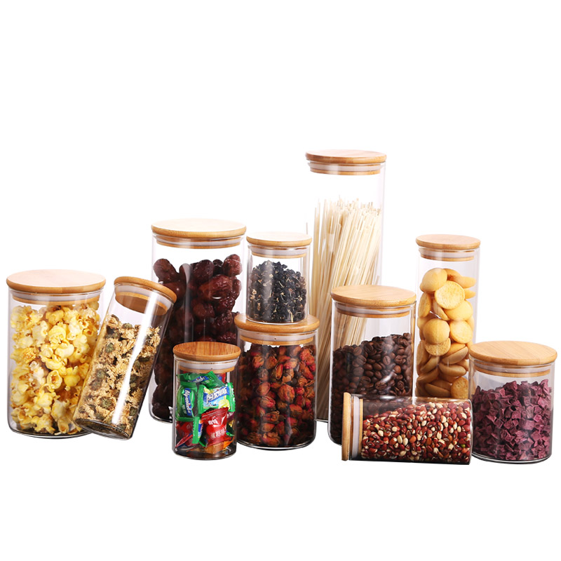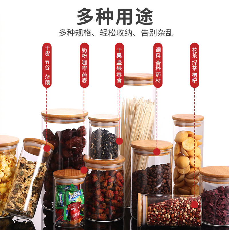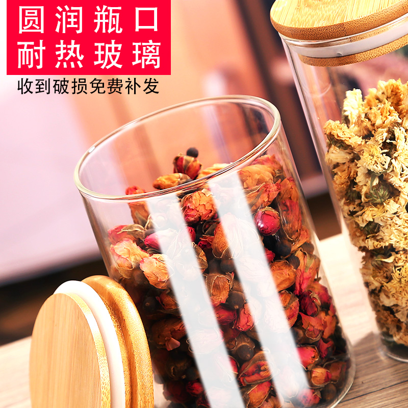 Sealed jar glass bottle transparent small tea jar with lid household kitchen food Miscellaneous grain storage box storage tank