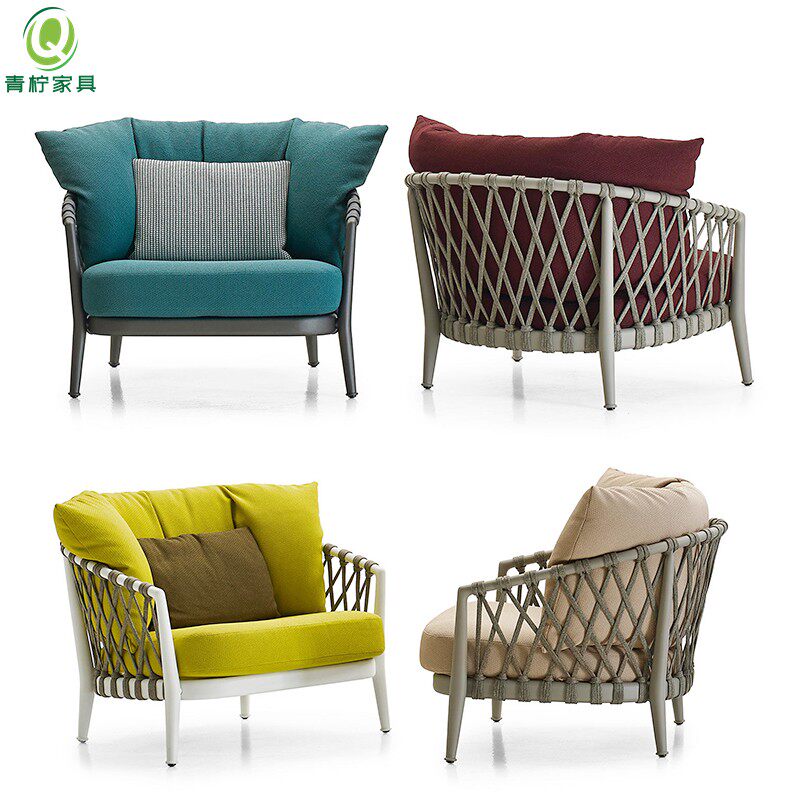 Nordic outdoor table and chair sofa balcony villa courtyard dining table garden table and chair rope belt table and chair creative outdoor rattan chair