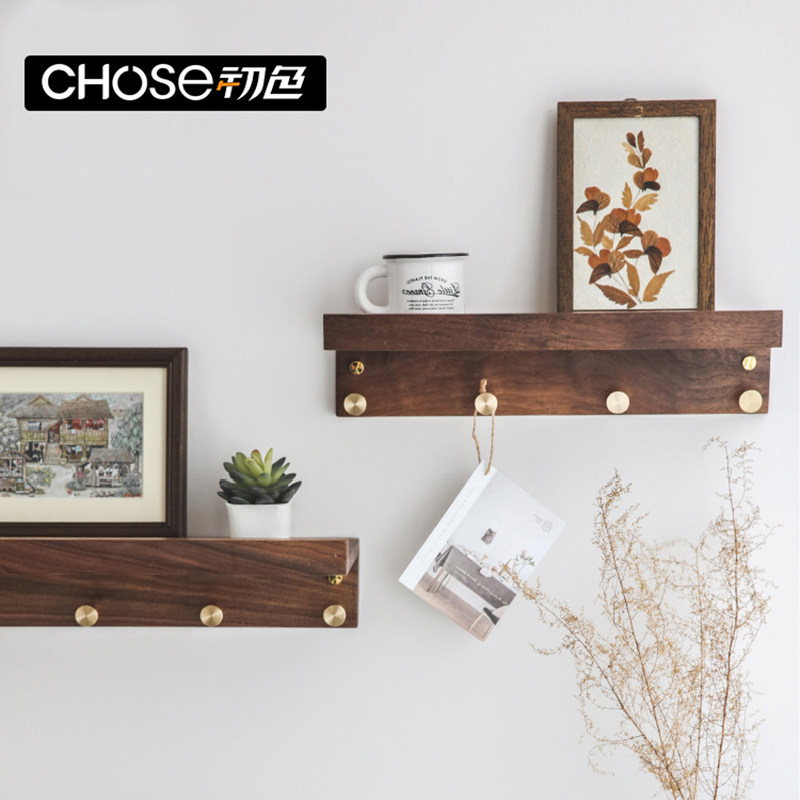 Nordic Solid Wood Hook Shelve Shelf Free Of Punch Partition Cloak Hood Hook Bedroom Creative Minimyo Metal Wall Hanging Hanger