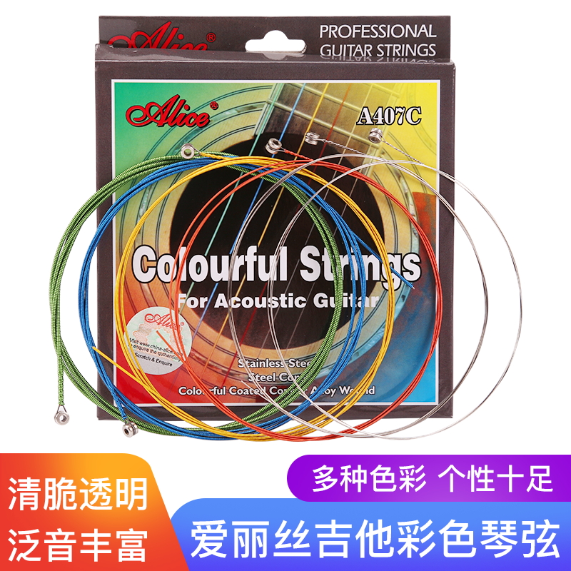 Alice A407C Colour Chord Folk ballad Guitar Strings string Lottery set 6 roots with anti-rust coating-Taobao