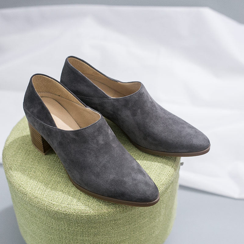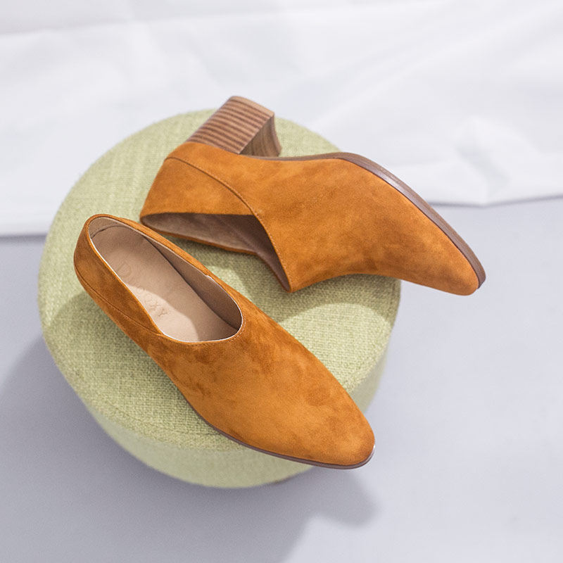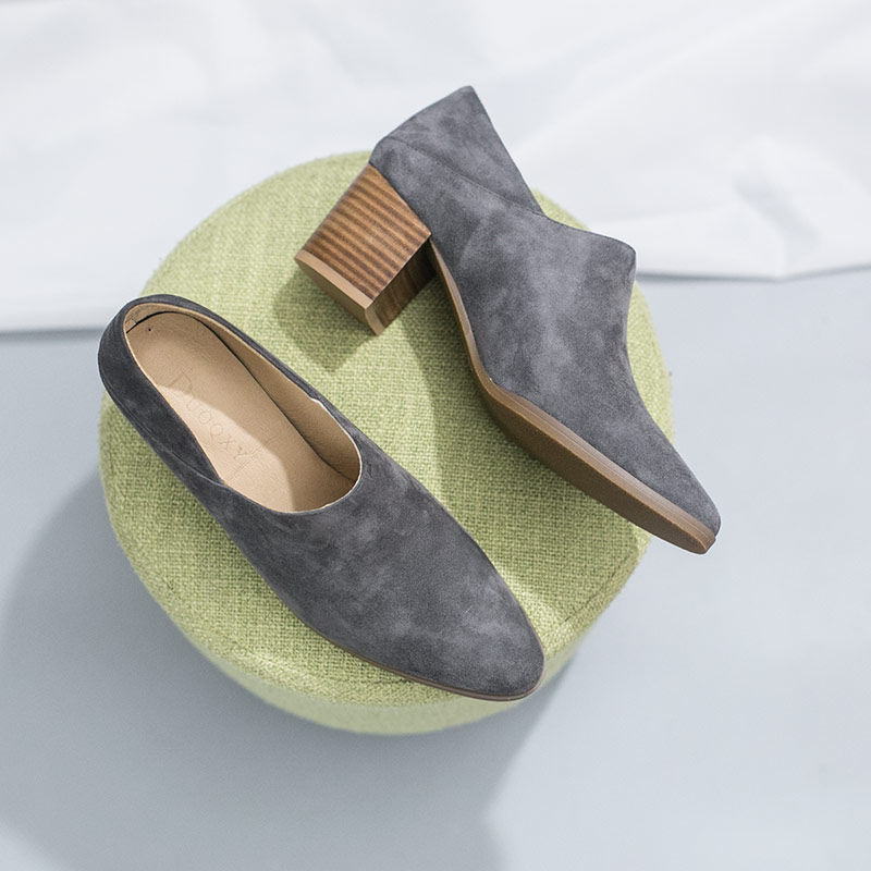 Literary temperament women's shoes frosted leather bag shoes sheepskin two-wear loafers deep mouth pointed toe high heels thick heels middle heels