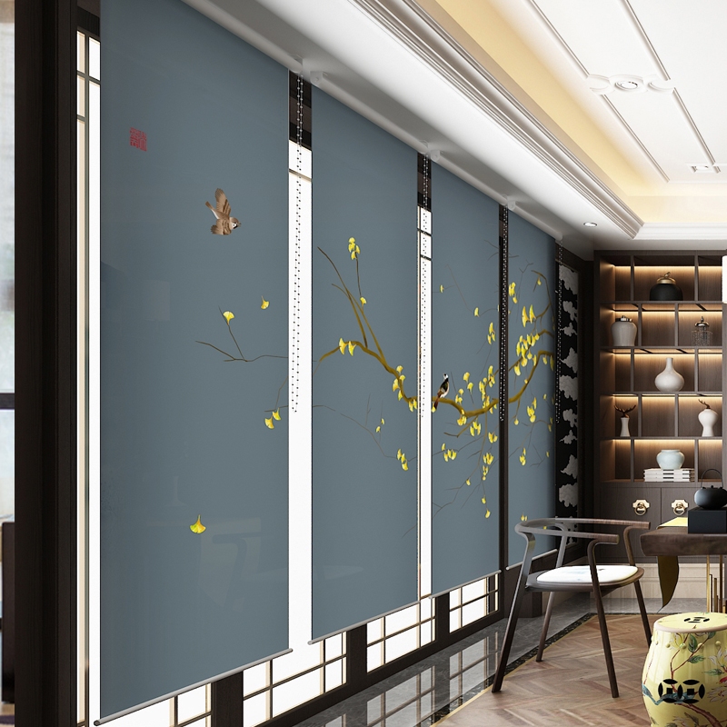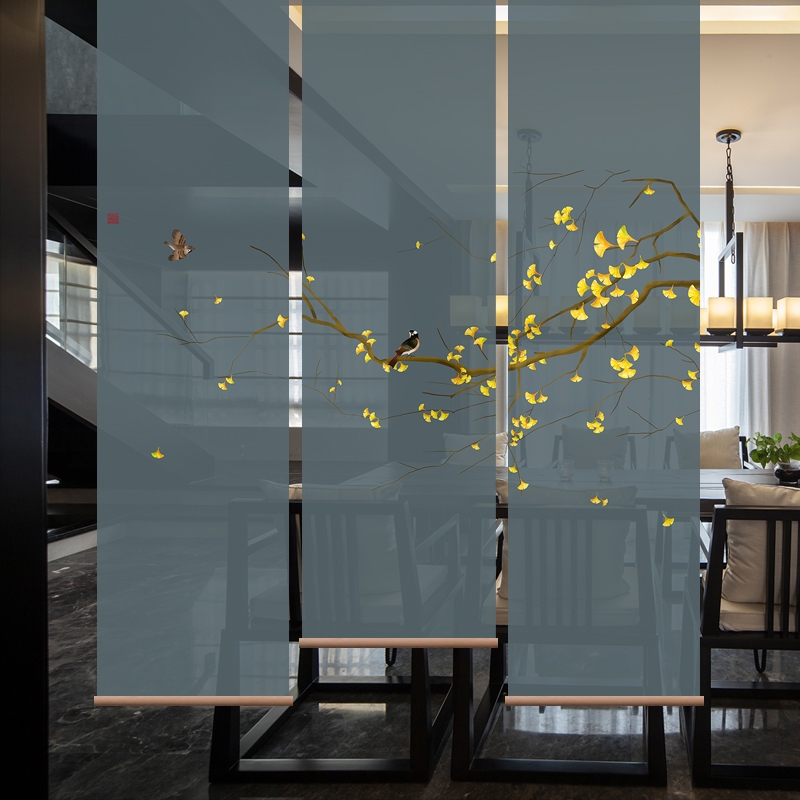 Modern New Chinese Retro-style Luxury Bird Screen Divided Guangdong Drawing Room Balcony Living Room Kitchen Semi-transparent Roll Curtain