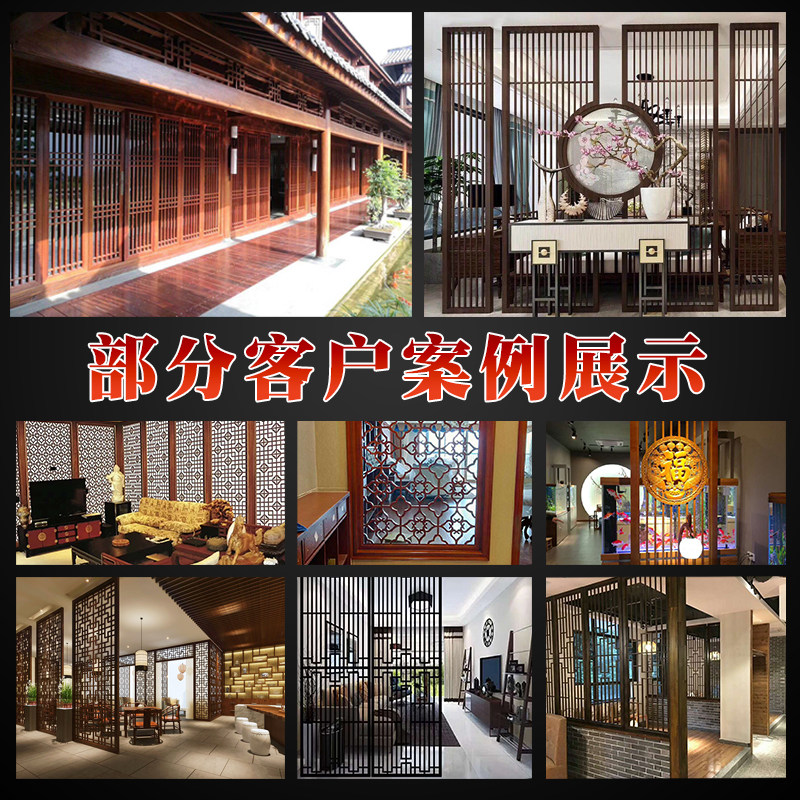 Dongyang wood carving antique doors and windows Solid wood lattice hollow entrance Chinese suspended ceiling partition screen cloth window background wall