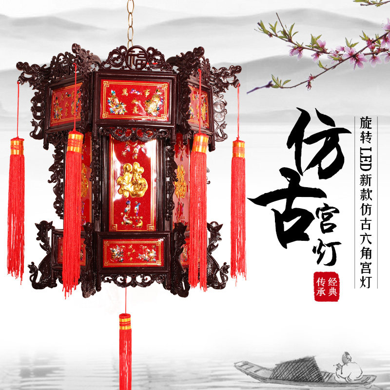 Antique hexagonal plastic palace lanterns New Year's Spring Festival daily opening Chinese red wedding celebration classical palace lanterns