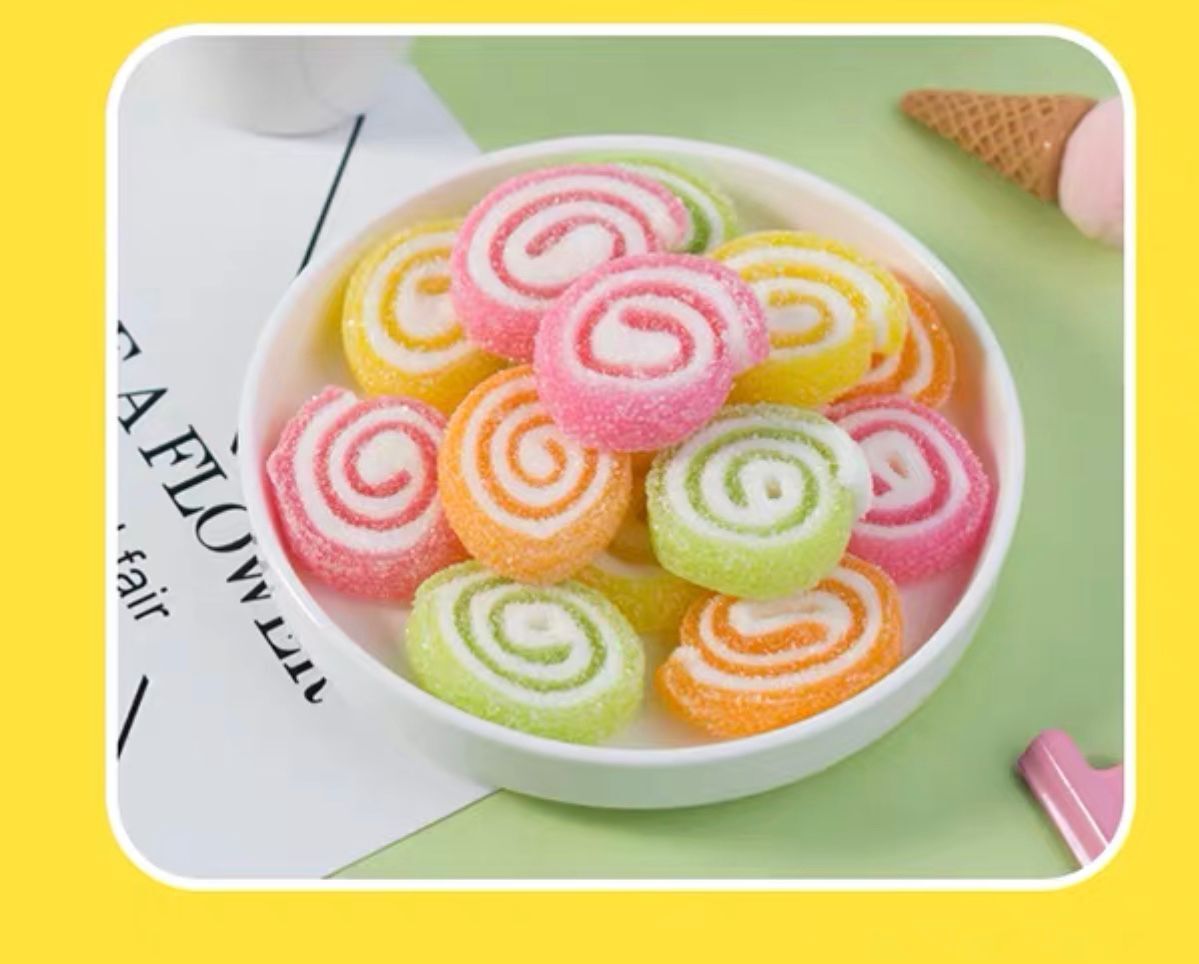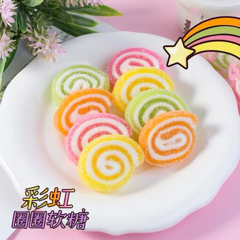 Rainbow Qq Rubber Candy Water Fruit Taste Ring Soft Sugar Soft Sugar 5 Catty Sandwich Soft Sugar Egg Roll Soft Sugar