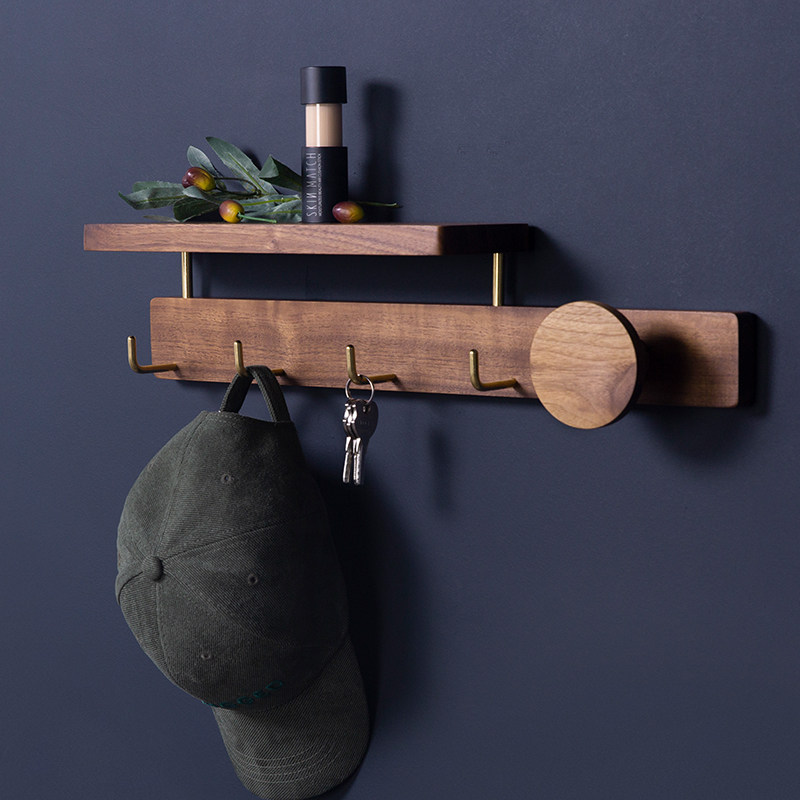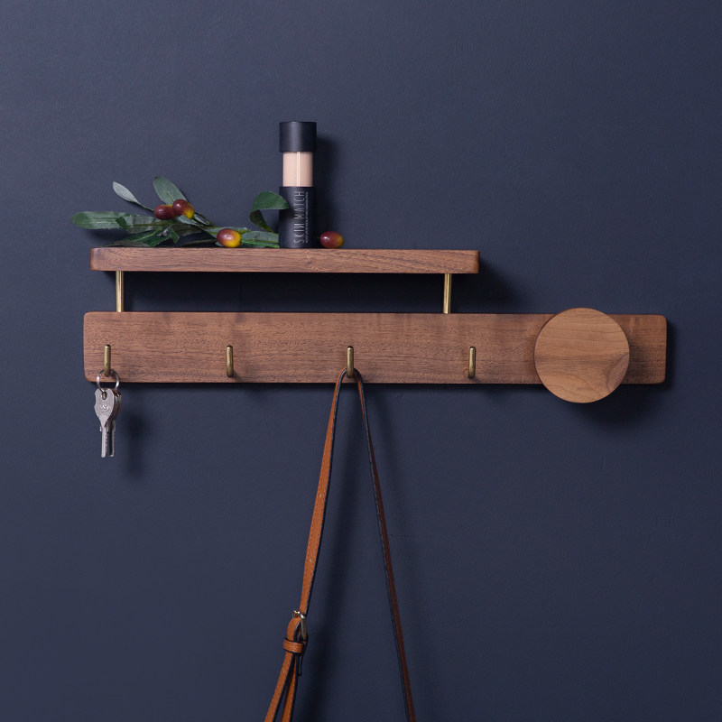 Entrance coat rack hook hanger key hook rack rack bag storage layer rack solid wood creative wall hanging partition