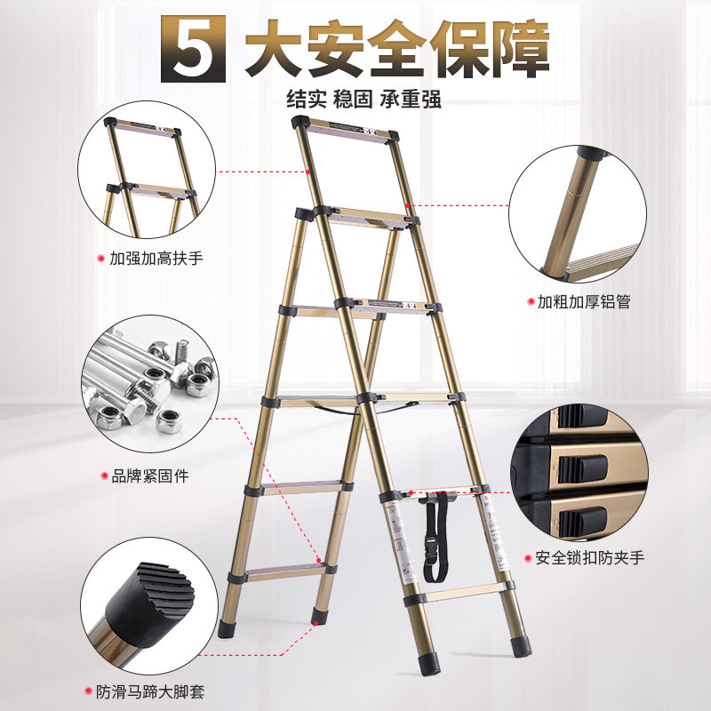 Home Ladder Folding Multifunction Indoor Herringbone Ladder Thickened Aluminum Alloy Five-step Ladder Small Building Ladder Telescopic Lift