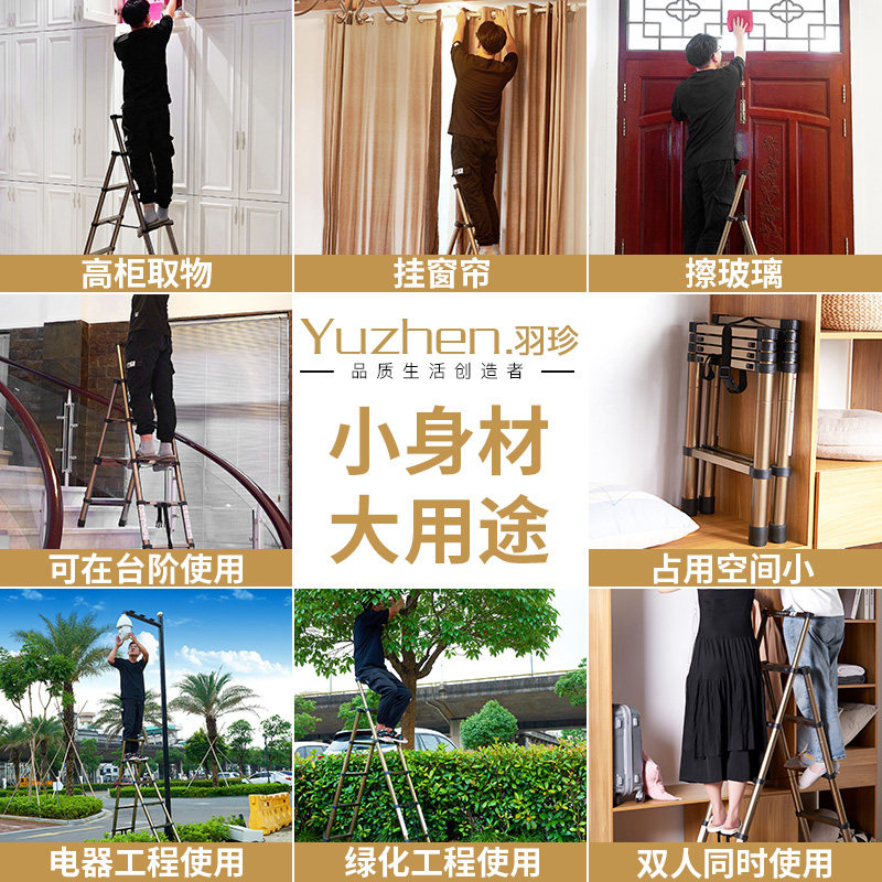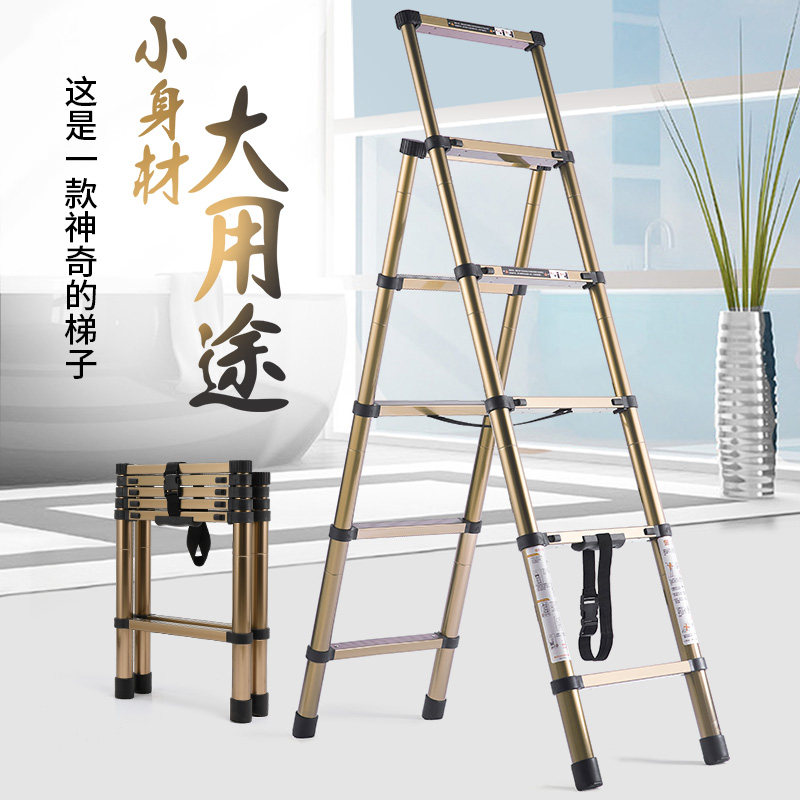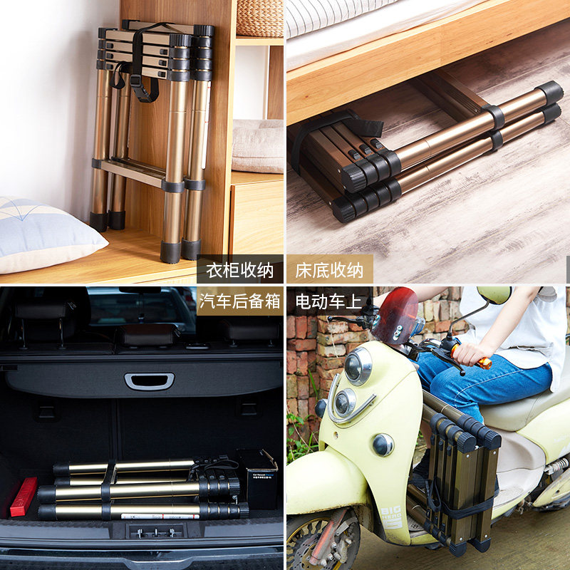 (Five Steps Thickened) champagne gold telescopic ladder (four-step thickened section) champagne gold telescopic ladder (five-step thickened) silver telescopic ladder (four-step thickened) silver telescopic ladder
