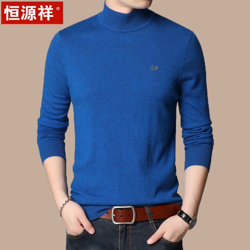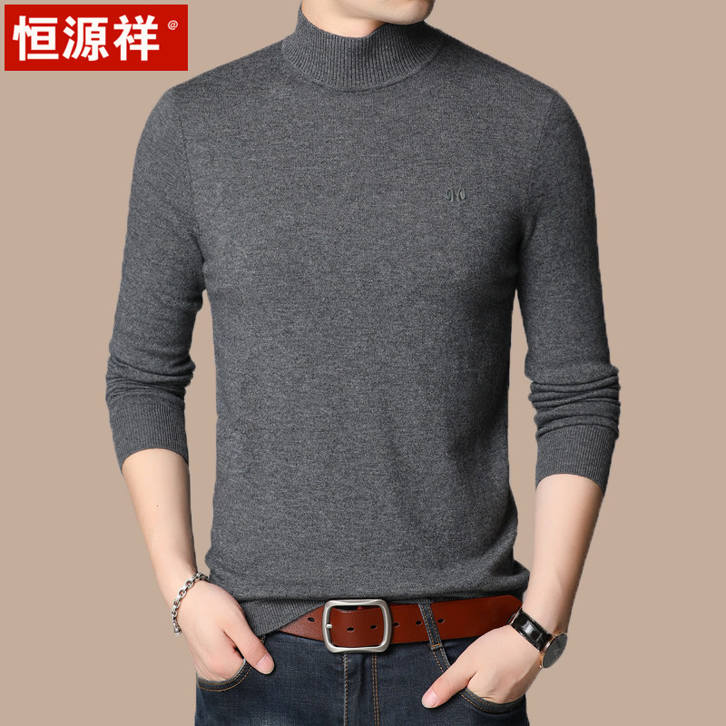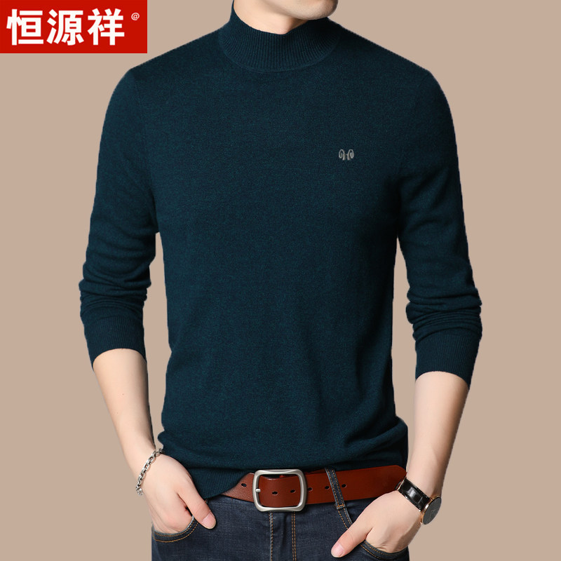 Hengyuan Xiang Winter Clothing Goat Sweatshirt Man's middle-aged and half high collar knit undershirt winter style Korean version of pure color collar sweater