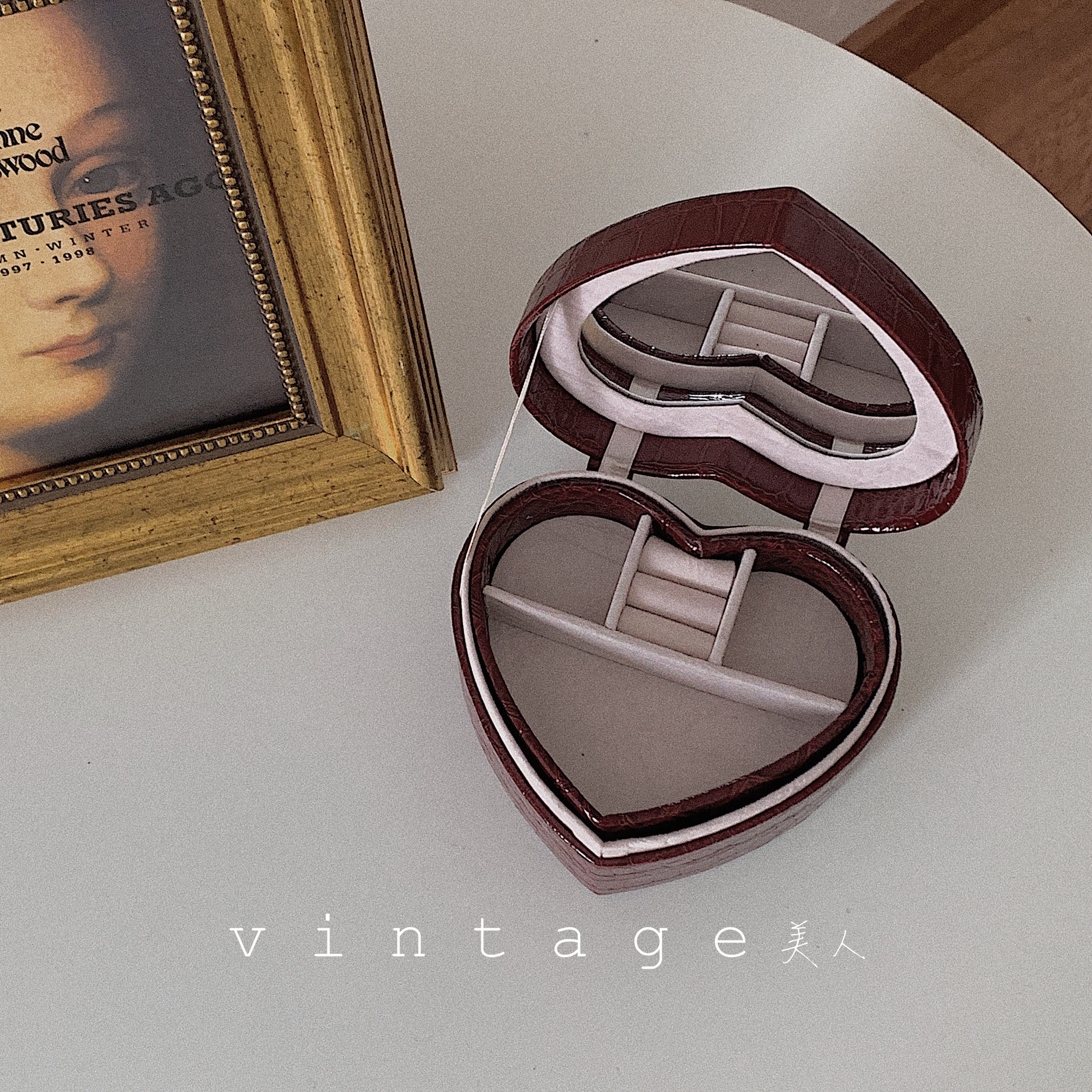 "retro treasures box" vintag French style containing box double suede ring earrings earrings necklace with mirror first decorated box