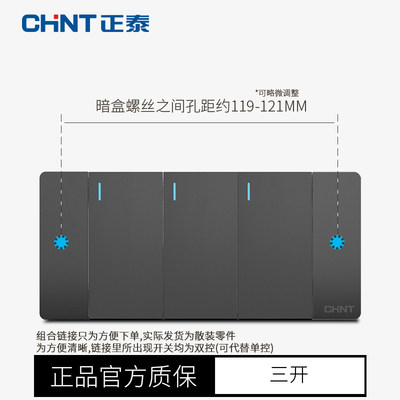 Chint 118 switch socket black dark wall three-position three-open double-cut 33-double-cut switch panel
