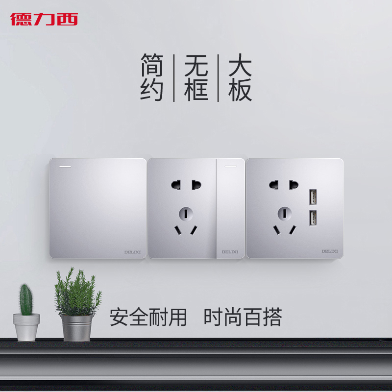 Deli West Silver 7 Holes Seven Holes Socket Panel Porous Home Wall Type 86 Multifunction Wall Inserts Grey Concealed