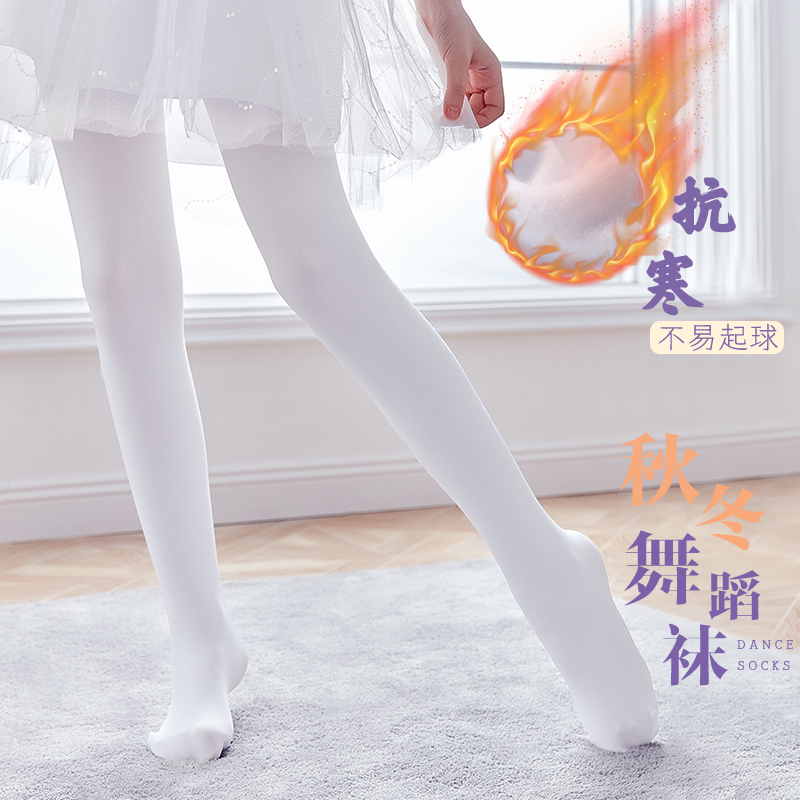 Children's dance socks thickened dance socks Autumn and winter warm practice socks Girls leggings velvet white pantyhose